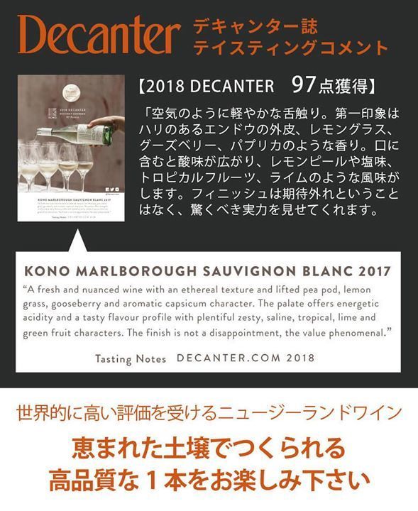 *マールボロ産ソーヴィニヨン・ブランの魅力を最大限に表現した白。刈りたての芝生やパッションフルーツ、ピンクグレープフルーツを想わせる香りに、シトラスの酸味。フレッシュではつらつとしたドライな味わいです。米国ワインスペクテイター誌の表紙を飾ったことがある他、世界の様々なコンクールで高い評価を得ています。