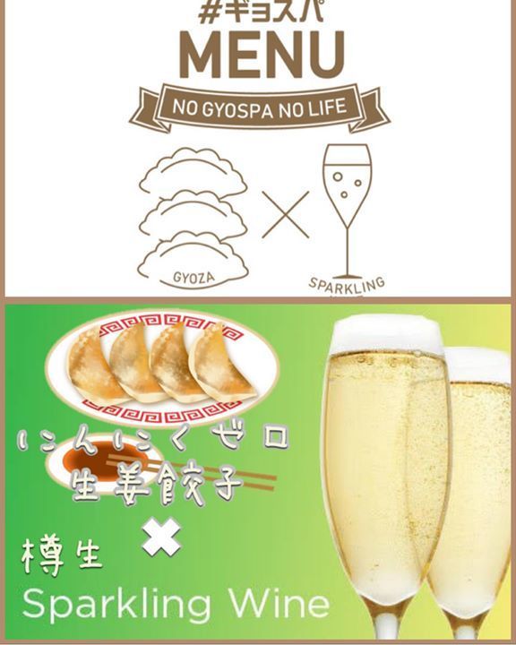 にんにくゼロの生姜餃子と樽生スパークリングのセット¥1200 です。