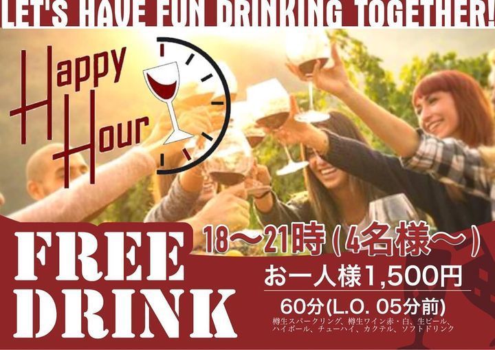 お得なHappy Hourのお知らせ