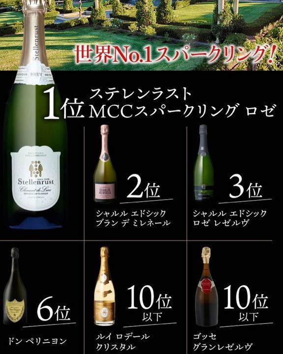 2015世界スパークリングワイン・チャレンジ(英国)でドンペリニョン2005、クリスタル2006などを制し1位。2012年ロンドンオリンピックに採用されたワイナリー「ステレンラスト」のスパークリングワイン。