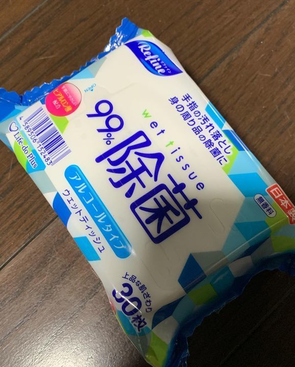 各テーブルに除菌ウェットティッシュ、