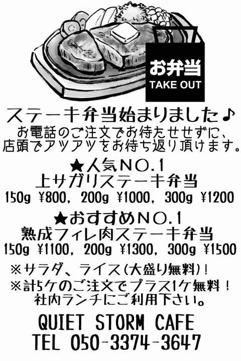 ステーキランチ&弁当、是非お試しください。宜しくお願い致します。
