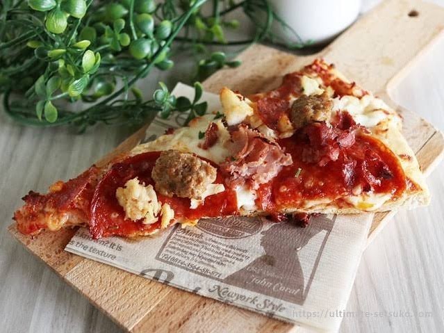 大きなペパロニソーセージに角切りのベーコン、蒸し鶏、コーンビーフにコンボピザでお馴染みのイタリアンソーセージ!