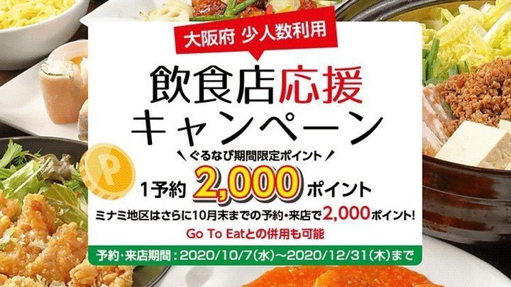 「大阪府少人数利用飲食店応援キャンペーン」&「Go To Eat」、是非ご利用ください。
