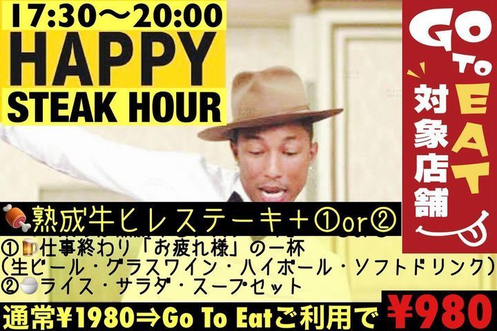 Go to Eatキャンペーン×ステーキのお得な「Happy Steak Hour」是非ご利用下さい!