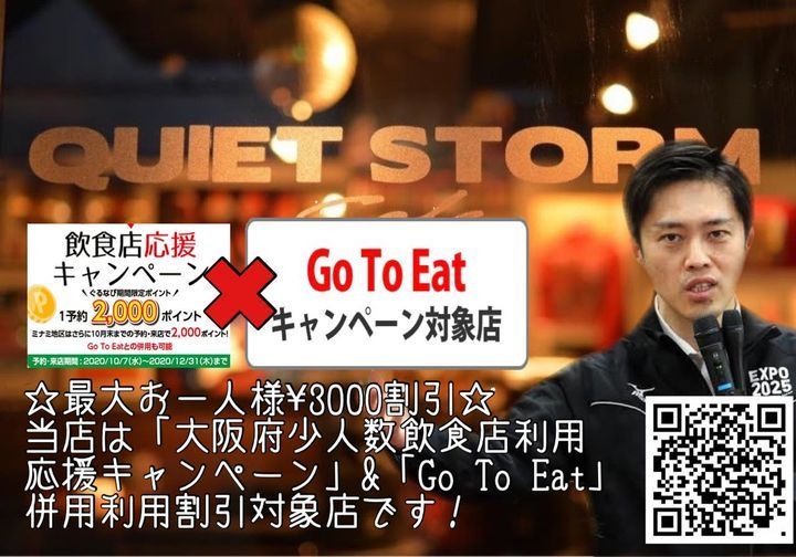 #quietstormcafeosaka #大阪 #梅田 #北新地 #西梅田 #堂島 #ワイン #シャンパン #スパークリング #樽生ワイン #アテ #ワンコイン #音楽 #dj #ソウルミュージック #プロジェクター #ウエディング #パーティー #宴会 #貸切 #ワインとアテと音 #ステーキ #ソーシャルディスタンス #少人数貸切 #gotoeat #gotoイート #大阪府少人数利用飲食店応援キャンペーン