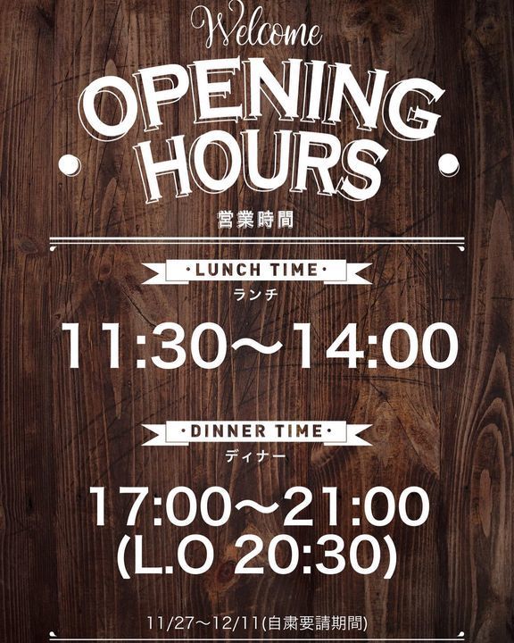 明日11/27〜12/11の期間営業時間を変更させていただきます。