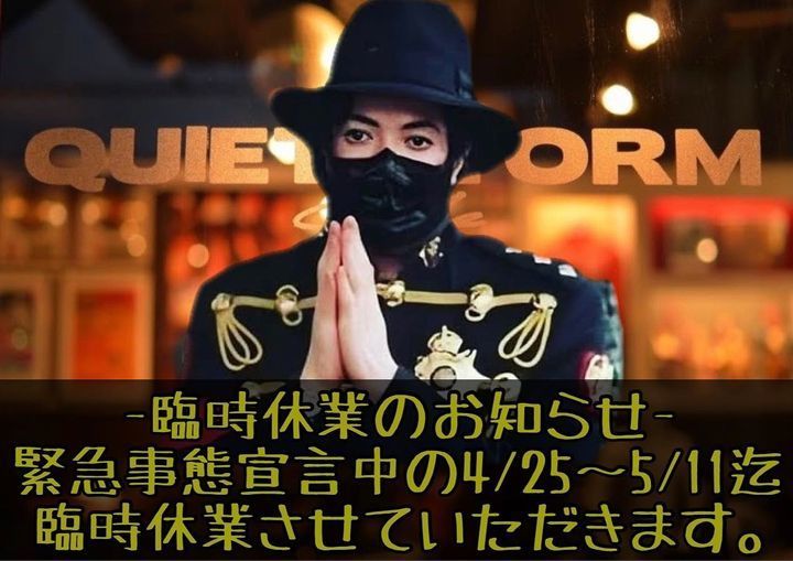 明日4/25より緊急事態宣言に伴い、5/11まで休業となります。